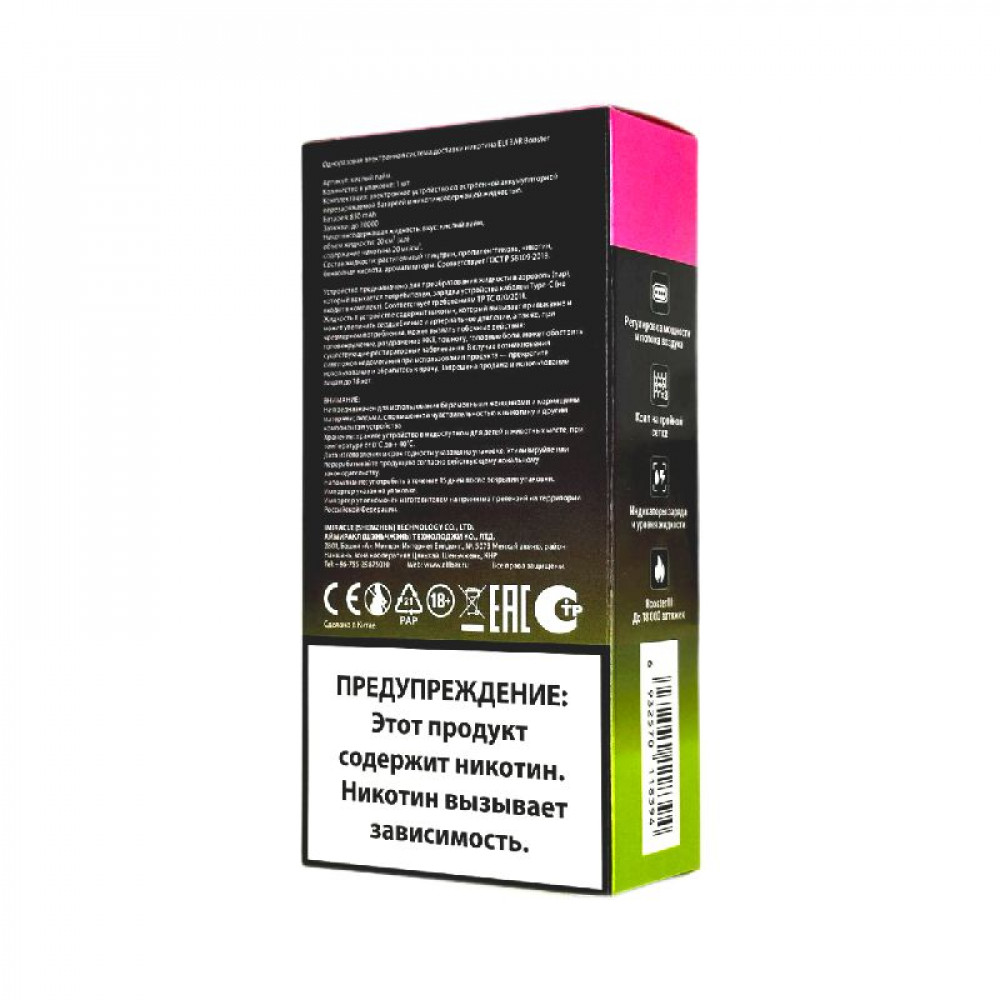 Технические характеристики Elf Bar 30000 Кислое яблоко арбуз