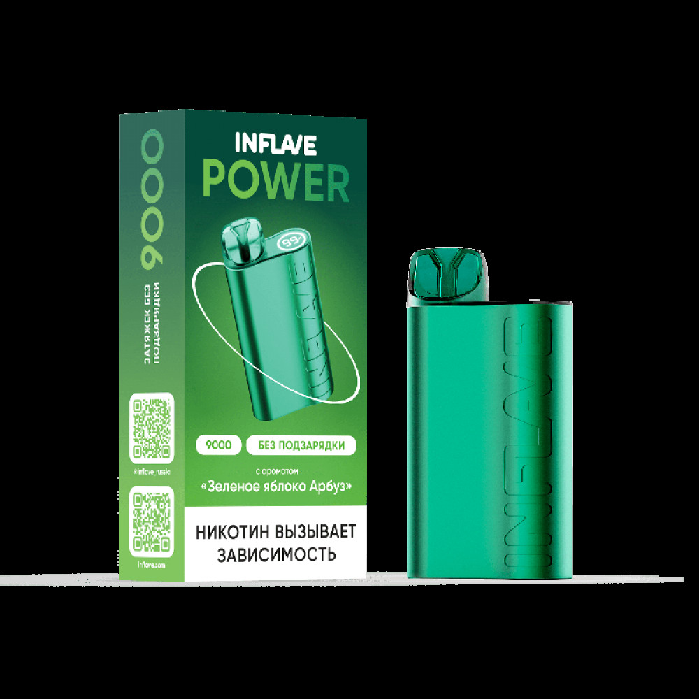 Электронная сигарета INFLAVE POWER 9000 затяжек Зеленое Яблоко Арбуз - купить в Нее