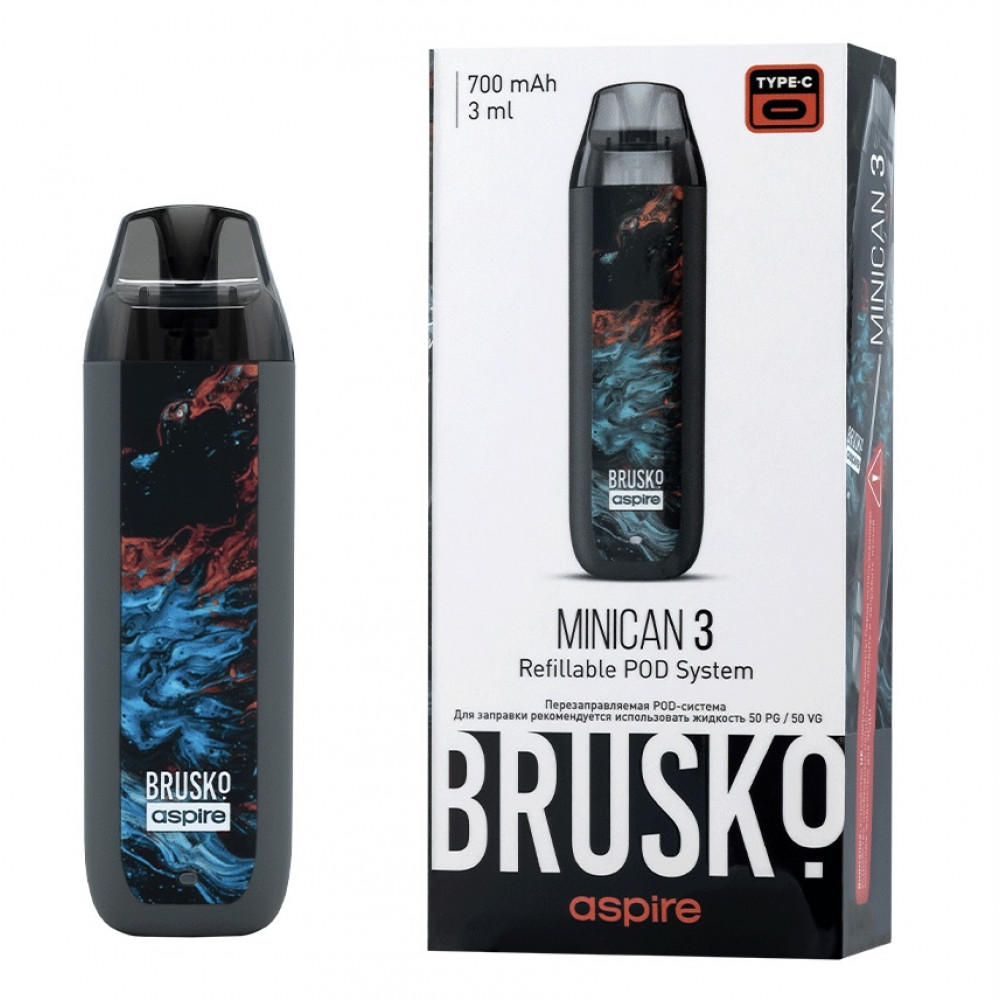 Перезаправляемая Под-Система Бруско Миникан 3 (Brusko Minican 3) 700 mah, Серый Флюид - купить в Нее